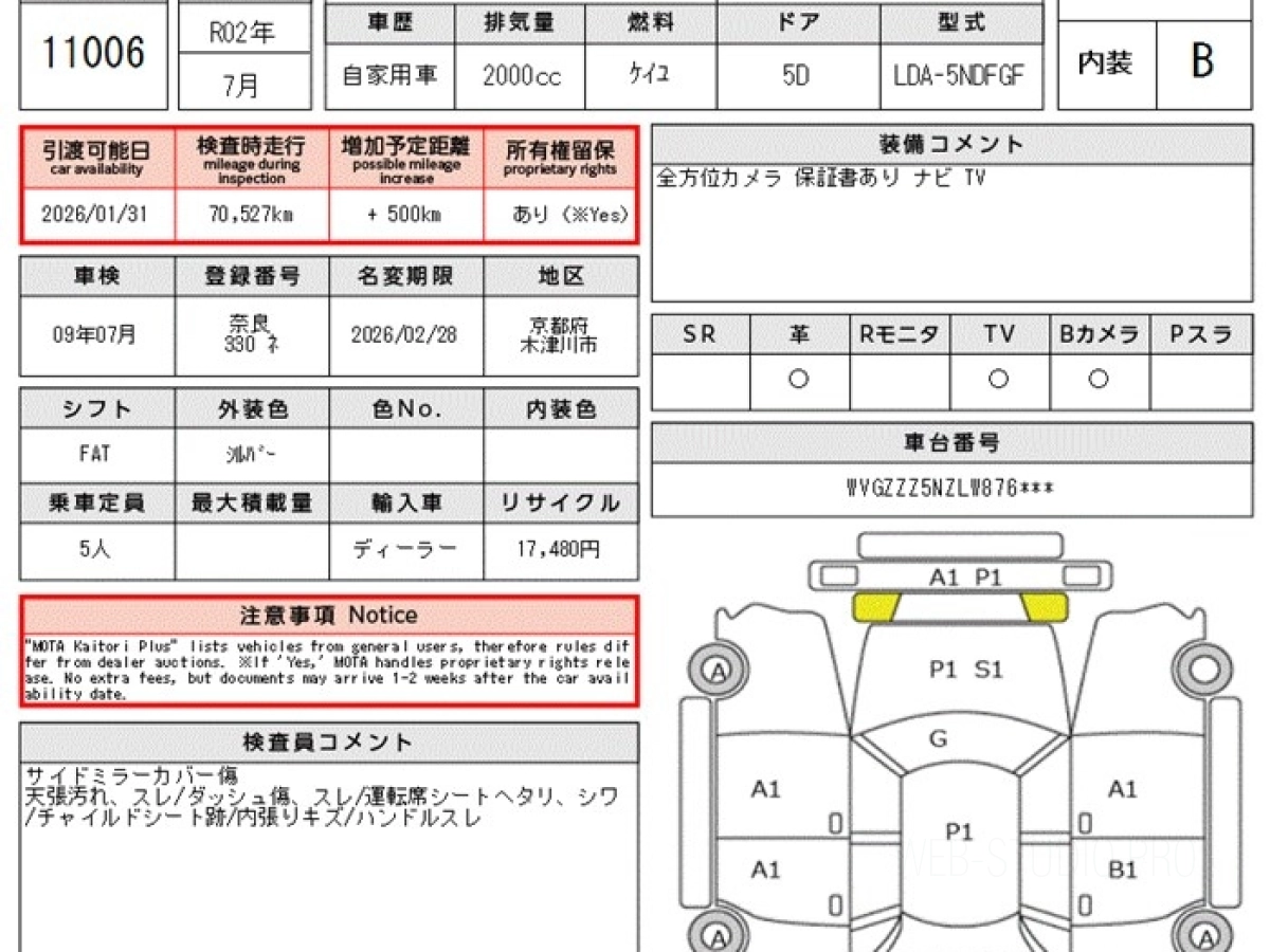 Аукцион: MOTA Kuruma Kaitori Plus