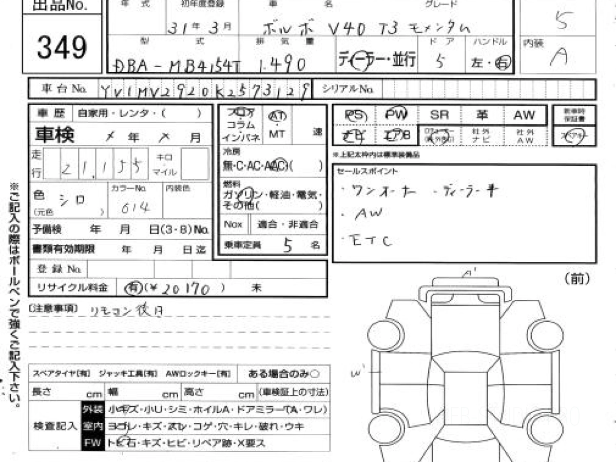 Купить VOLVO V40 2019 года выпуска можно под заказ с аукционов Японии во Владивостоке с доставкой в Москву или любой другой город России.