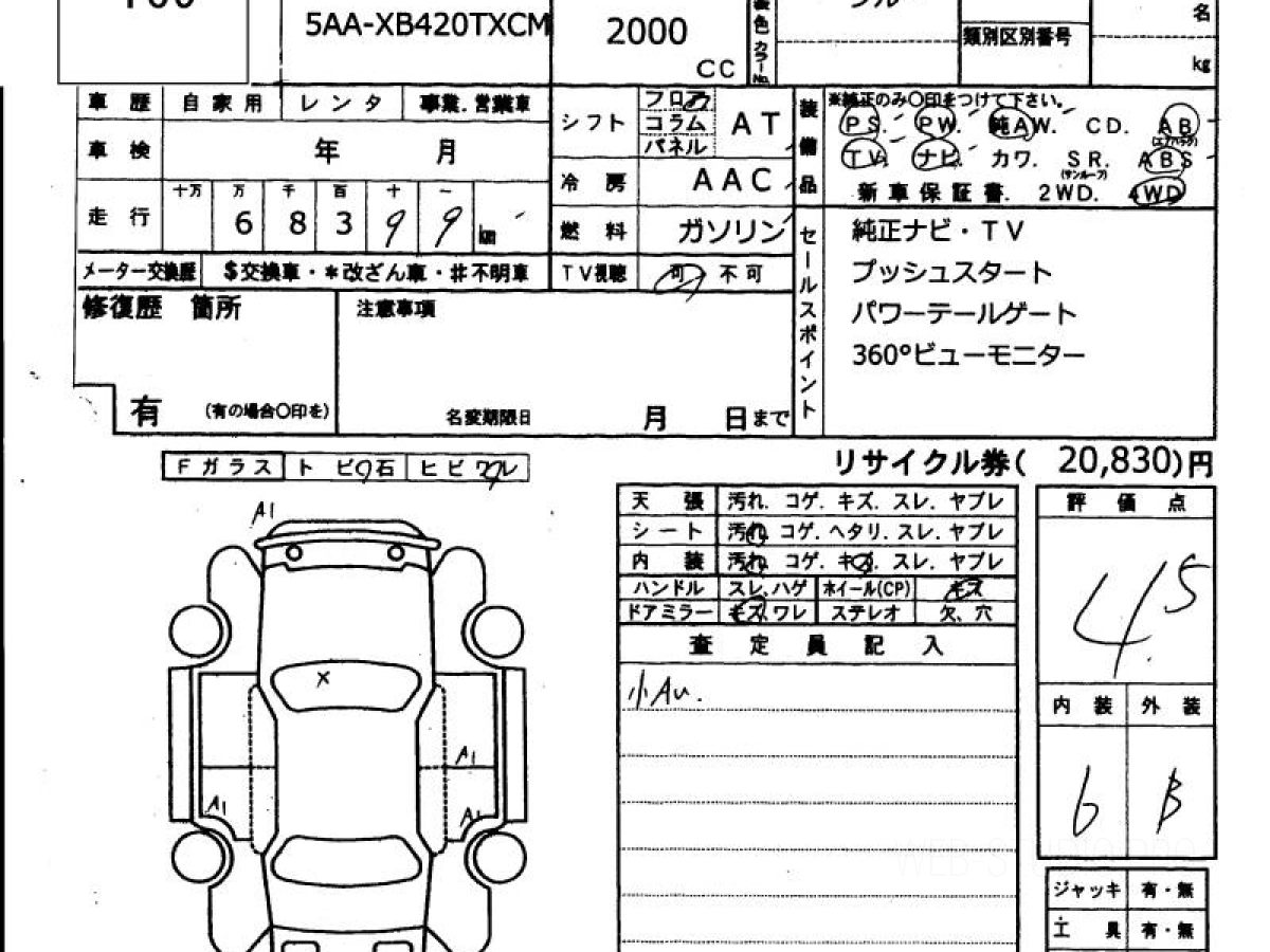 Оценка аукциона: 4.5, что гарантирует хорошее техническое и косметическое состояние кузова и салона.