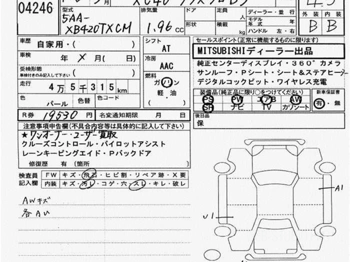 Оценка аукциона: 4.5, что гарантирует хорошее техническое и косметическое состояние кузова и салона.
