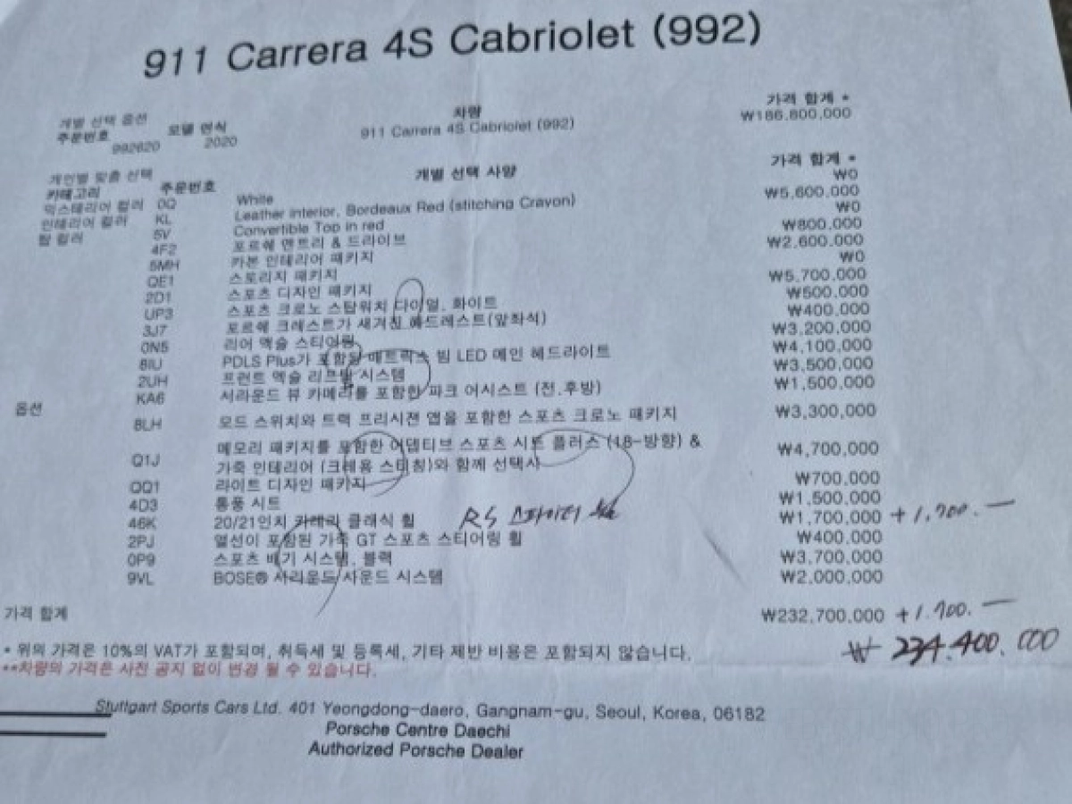 Сделайте заказ прямо сейчас и получите свой 911 992 без пробега по России, с небольшим пробегом 38 000 км по Корее и с желаемой комплектацией Carrera 4S Cabriolet по привлекательной цене 10 537 000 ₽ в России, оцените все преимущества инновационного надёжного бензинового двигателя с мощностью л.с., который выдержит любые расстояния по России :) Станьте владельцем одного из самых технологичных современных автомобилей нашего времени!